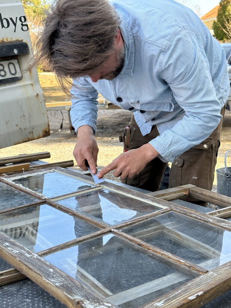 Genom att återanvända gamla byggmaterial sparar vi på jordens resurser och minskar vår klimatpåverkan. Dessutom har äldre material ofta bättre kvalitet och en fin patina som hjälper till att bevara husets charm och historia. Patrik är duktig på att scanna marknaden efter återbruk och har också ett eget lager av bland annat fönster och dörrar av olika mått.